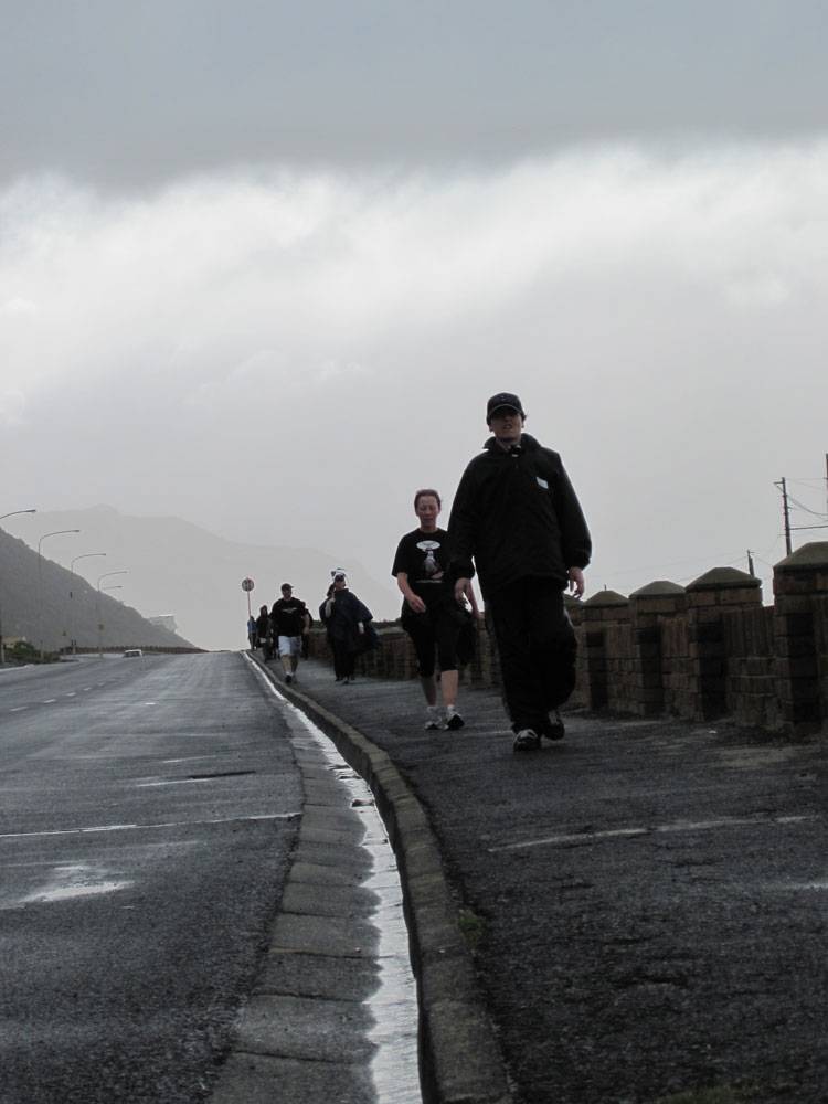 This morning, we were joined by about 40 other waddlers from all walks of life. Together, they set off from Muizenberg and unfortunately, only a couple of kilometres further, the rain came down and everyone got drenched.