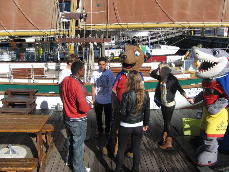 Our mascots, Silver the Shark and Terminator the Seal, took advantage of a super-sunny day in Cape Town to take a catamaran trip around the V&A Waterfront harbour. Their fellow travellers were very pleased to be joined by the Aquarium’s much-loved celebrities.