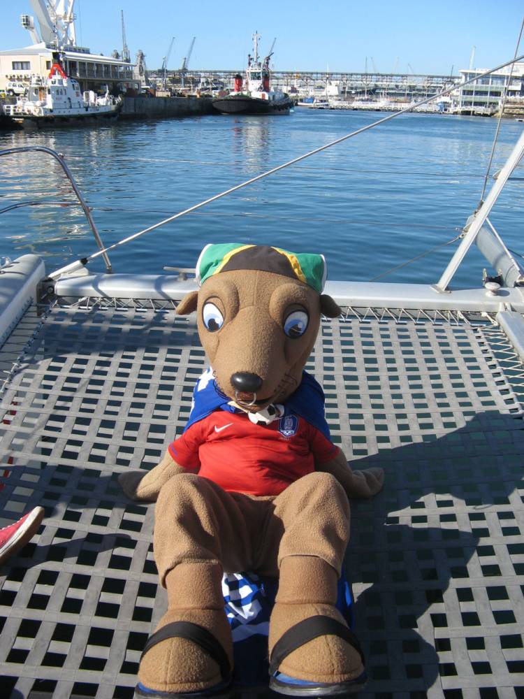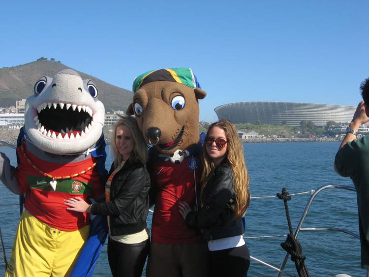 These lovely ladies couldn’t resist a hug from our mascots. Signal Hill and the Cape Town Stadium make a picture-perfect backdrop.