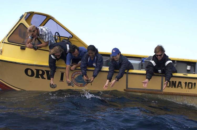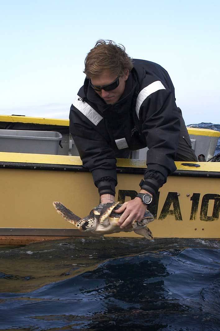 One of the 19 juvenile loggerhead turtles destined for the great wide open is tagged and ready for release.