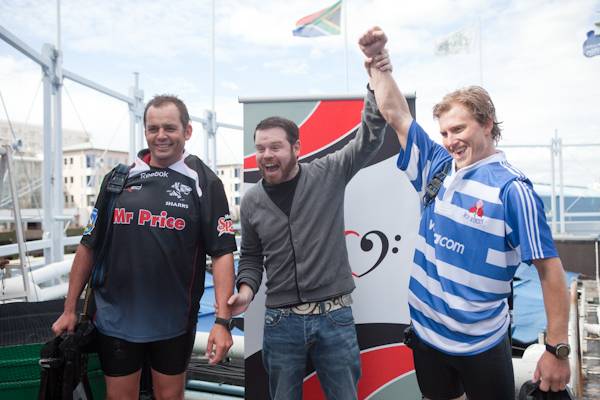 Paul Snodgrass from Cape Town radio station Heart 104.9FM put “WP sharks” to the test to see which team they would choose as the winners of the Currie Cup final to be played in Durban on 30 October. Here is the proof! Photographs by Andy Lund/Heart 104.9FM.