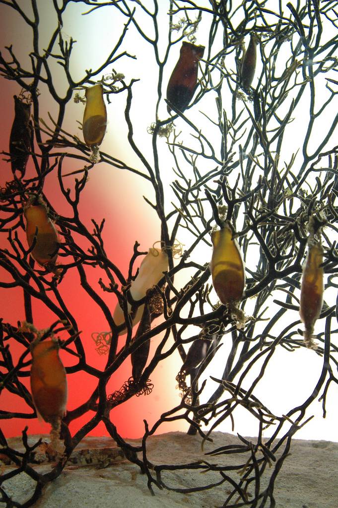 Shark eggs, also known as “mermaids’ purses”, look almost other-worldly. If you look carefully, you can see baby shysharks inside the little casings!