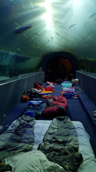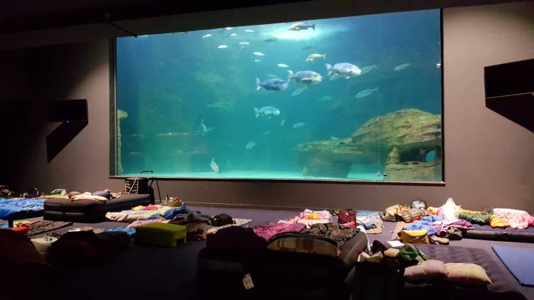 We recently hosted the first members-only family sleepover in front of the new I&J Ocean Exhibit. And jiggling jellyfish, were the members excited!