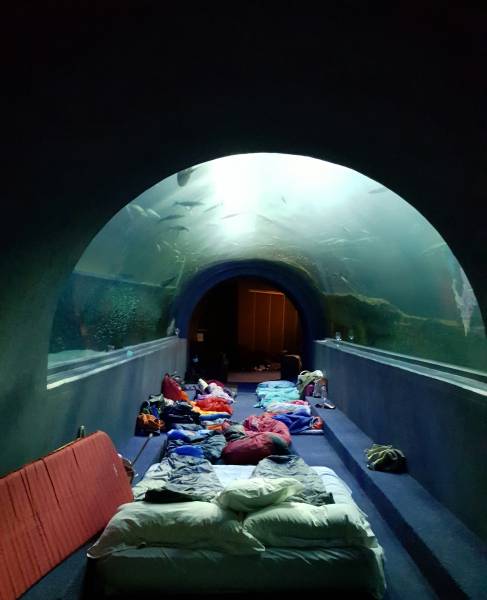 Members could sleep right in front of the main viewing window and have their supper while watching Yoshi the loggerhead turtle, among the other sea creatures, swimming in the display.