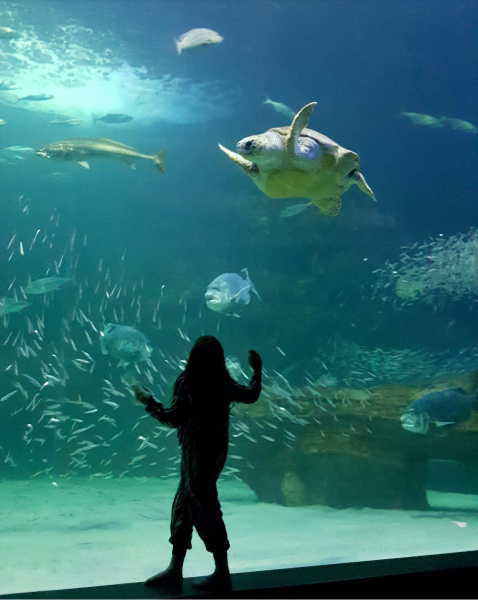 They could also walk through the Aquarium, enjoying the exhibits at their leisure.