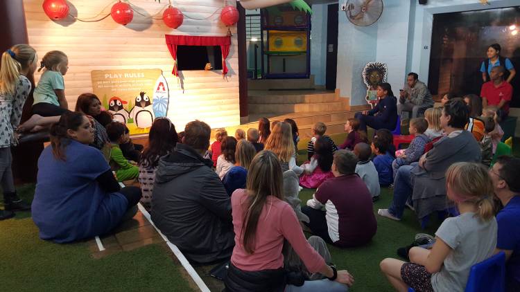 The kids enjoyed the puppet show and then made their own jelly mobile from recycled materials.