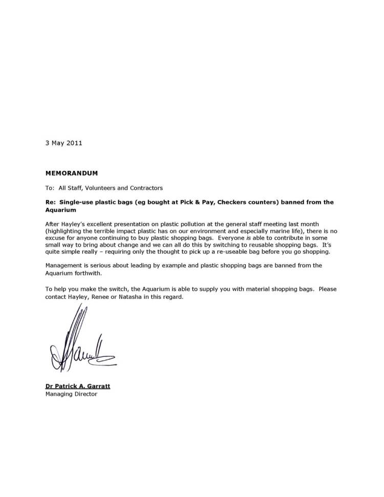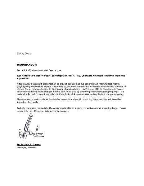 I am so proud to say that I work for an environmental organisation that has shown its commitment to rethinking the bag. Two Oceans Aquarium Managing Director Dr Patrick Garratt has made his appeal and all Two Oceans Aquarium staff members have pledged to no longer bring any plastic bags into the building.
