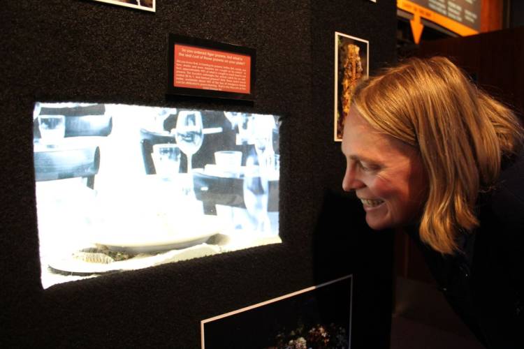 Your new tiger prawn exhibit tells visitors about the by-catch associated with the tiger prawn fishing industry and shows tiger prawns on a dinner plate. According to your signage, 1kg of tiger prawn yields 9kg of bycatch.