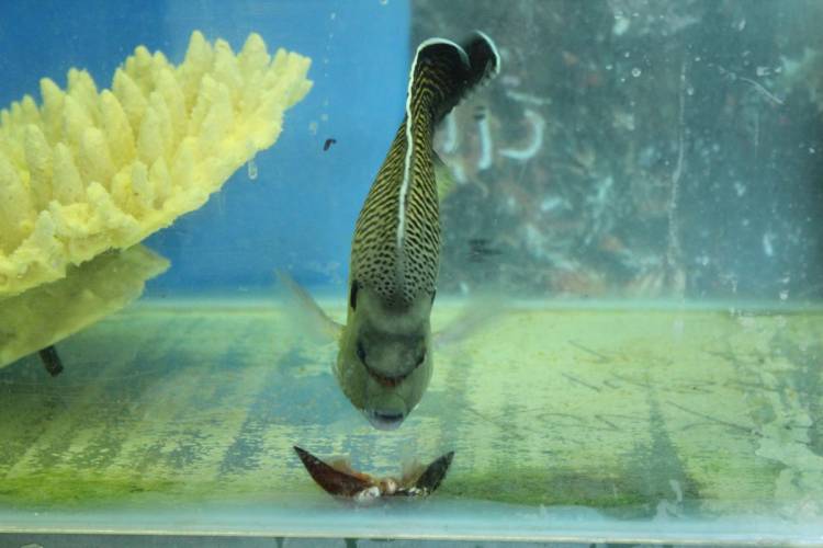 Fish in the wild are prone to a number of parasites, the most common being white spot and velvet disease. To treat the fish, Nic prepares a special solution and then gives the fish a “bath”!