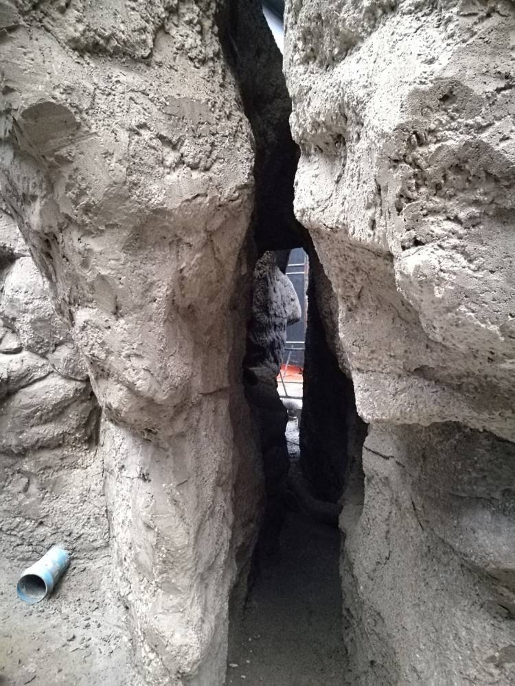 A narrow crack through the centre of the rockwork now also allows for smaller fish to swim through and hide or rest. Natural refuges like this are important in real-world ecosystems, and will enable our exhibit to have a larger variety of fish species.