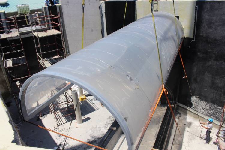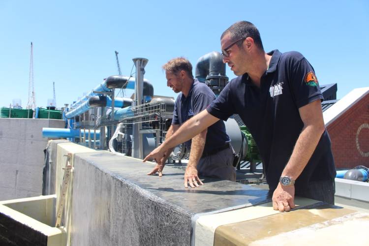 “The big water test is done to triple-check that the waterproofing and silicon seals are all good,” says Mike. “The tank is filled with the full 1.5 million litres. We look for leaking window seals and any bubbling of the waterproofing. The test runs for eight days. Sometimes it is only when we empty the tank that the bubbling of the waterproofing may show up.”
