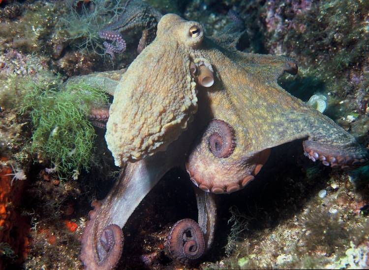 The common octopus is amazingly intelligent - in fact this became the first ever invertebrate to be recognized as having certain rights in the ASPA act. We know that Miranda the octopus who lives with us is always devising new and clever ways to get to her food.