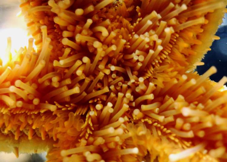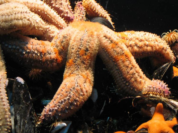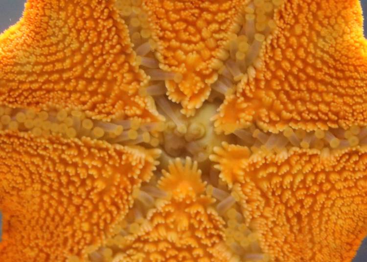 The spiny sea star uses its tube feet to detect prey. It releases a toxin that poisons whelks - used for both defence and hunting.