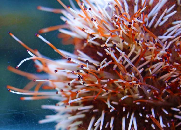 Sea urchins use long tube feet that extend from between their spines to move, and detect prey - these slow moving animals are omnivores.