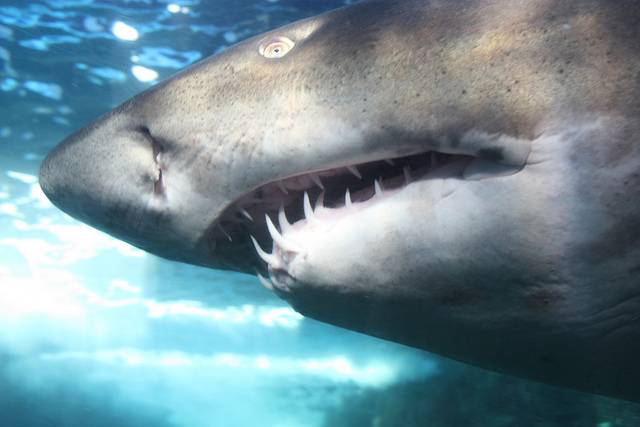Sharks’ teeth are arranged in rows which continually move slowly forward, like conveyor belts. This ensures a constant supply of sharp, new teeth and results in sharks losing and replacing thousands of teeth in a lifetime. Photo courtesy beckstei. If you have a scuba licence, you can dive with our sharks!