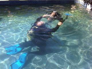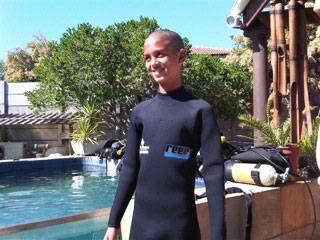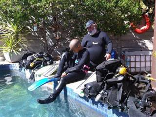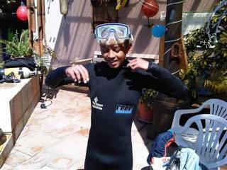 We went to a diving school’s swimming pool in Blouberg so that Mohammed could practise breathing with scuba gear and swimming with flippers. He did extremely well and his little brother loved splashing in the water.