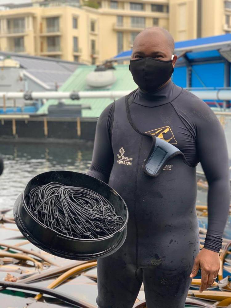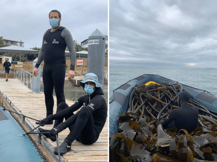In order to restock this exhibit with kelp, the Aquarium's collections team headed out to the natural kelp forests of Table Bay to retrieve fresh specimens of sea bamboo that were the perfect size for our Kelp Forest Exhibit.