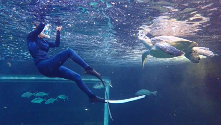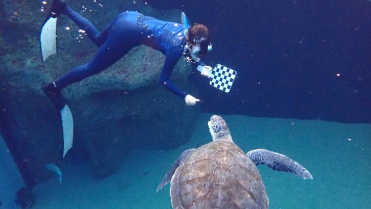 Alexandra Panagiotou is a member of the Two Oceans Aquarium Education Foundation's turtle rehab team, with a wealth of international conservation and wildlife rehabilitation experience. Alex has been tasked with studying the behaviour of Bob and devising enrichment activities that can help Bob regain and strengthen the natural instincts and capabilities that he'll need when released. These new practices began in February this year, and Alex is already seeing amazing results!