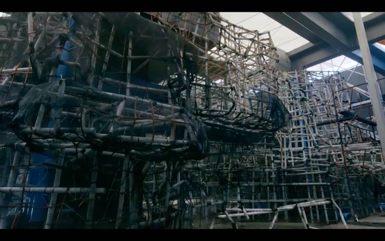 MB: The plastic used is PVC and polycop pipes, the same pipes that supply water to the exhibits and the same pipes that supply drinking water to households across the globe. Safe to say there is no chance of toxins being released unless it catches fire.