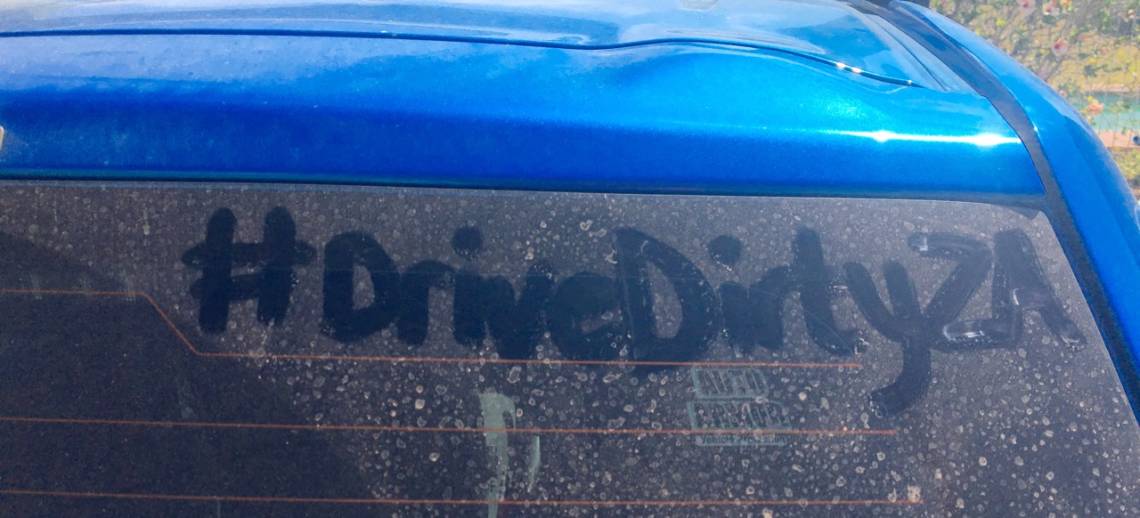 Let’s get this movement going! Stop washing your car and write the #DriveDirtyZA hashtag in the dust on your car’s back window.
