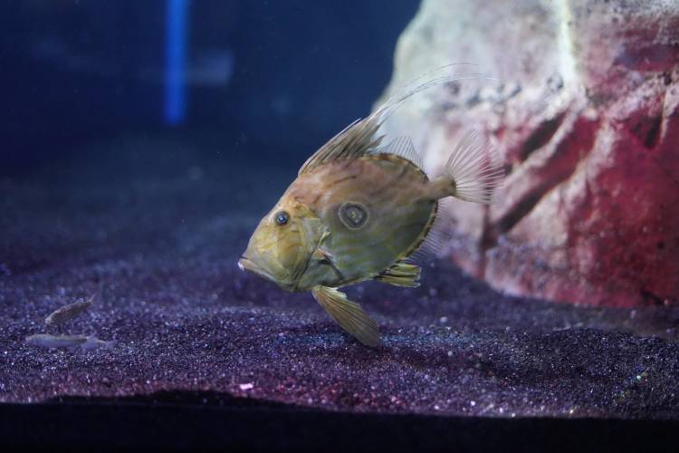 The John Dory is oval-shaped and has a compressed body, with a large protruding mouth. Its compressed body makes it difficult to see from the front. This, combined with its forward-facing eyes, which provide binocular vision and depth perception, makes it incredibly effective at ambushing prey!