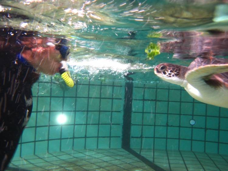 green turtle, Cannelloni, to learn how to be target-fed. This was before Cannelloni had been introduced into the