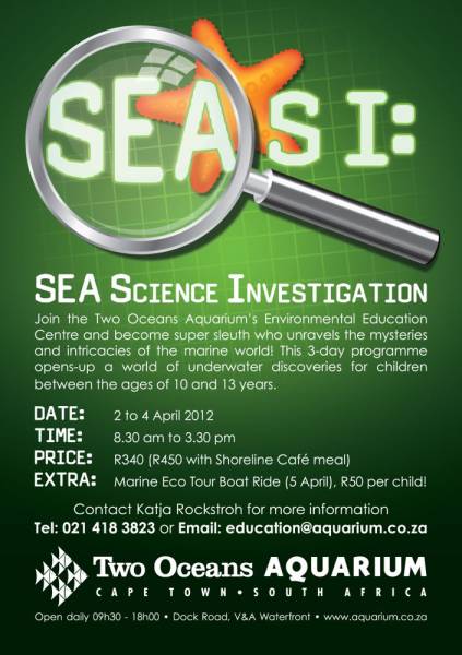 Children between the ages of 10 and 13 years should join in on the SEA: SI programme, which is running from 2 to 4 April, from 08h30 to 15h30. With the expert, interactive guidance of our Environmental Education Centre teachers, kids will become super-sleuths who unravel the mysteries and intricacies of the marine world. This three-day programme during the school holidays opens up a world of underwater magic.
