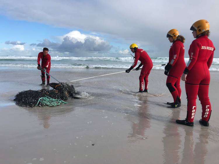 When Maryke and the NSRI arrived on the scene, they were pleasantly surprised to find that turtle was alive too! Both animals were completely entangled in the net - a sure sign of the mighty struggle they put up trying to free themselves.