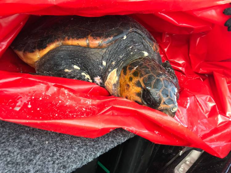 Turtles, like all reptiles, have very slow metabolisms and the effects of hypothermia and stress on the digestive system can be severe. This turtle was showing clear signs of the cold, which is why it will be under observation for a short while before being released.
