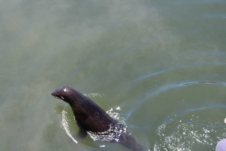 After a final check and the all clear from our resident vet, Dr Georgina Cole, the seal was carried down to the jetty and there it was gently released. The seal was free and could join its friends for a lazy roll through the water.