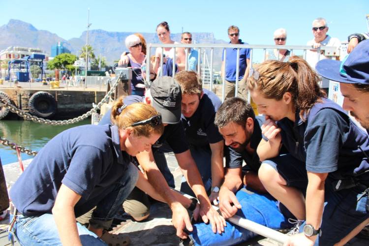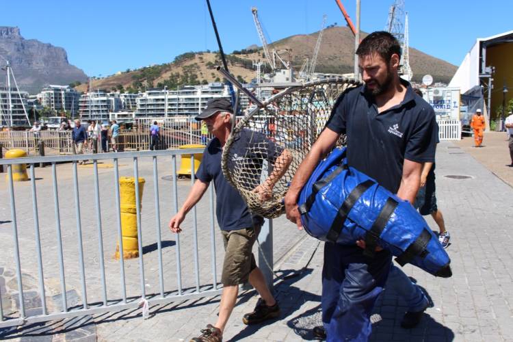The Two Oceans Aquarium’s curatorial and technical teams are often called out to help stuck or injured marine animals in and around the V&A Waterfront. We have a history of releasing ocean sunfish from the surrounding dry docks, and we also regularly work with the harbour’s Cape fur seals. Specifically, we assist in freeing them of painful plastic loops, fishing lines, nets and other debris that have wrapped around their necks and bodies and that are causing deep, painful wounds and often life-threatening injuries.