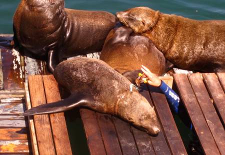 On 23 November 2015 we ended up doing both jobs: capturing and removing a Cape fur seal stuck in the Robinson dry dock next door, then painstakingly removing gill nets from its mouth and torso before releasing it back into the water.