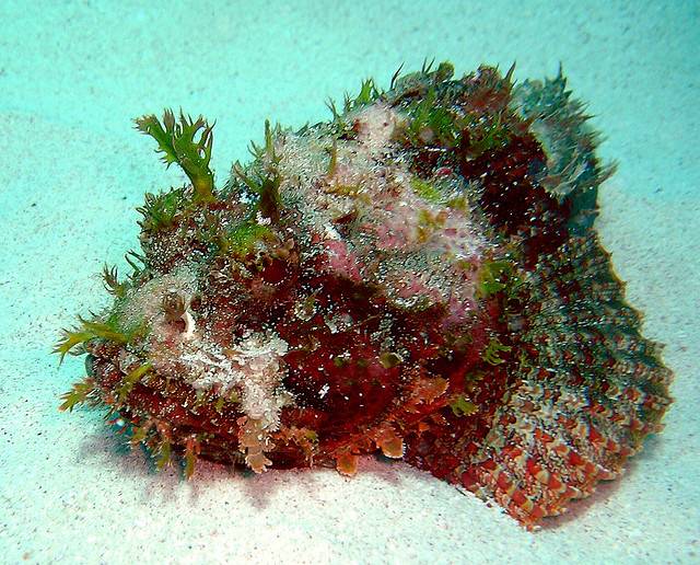 There are many different types of scorpionfish, most of which are bottom-dwellers. They feed on crustaceans and smaller fish and ambush their prey by lurking in disguise – sneaky!