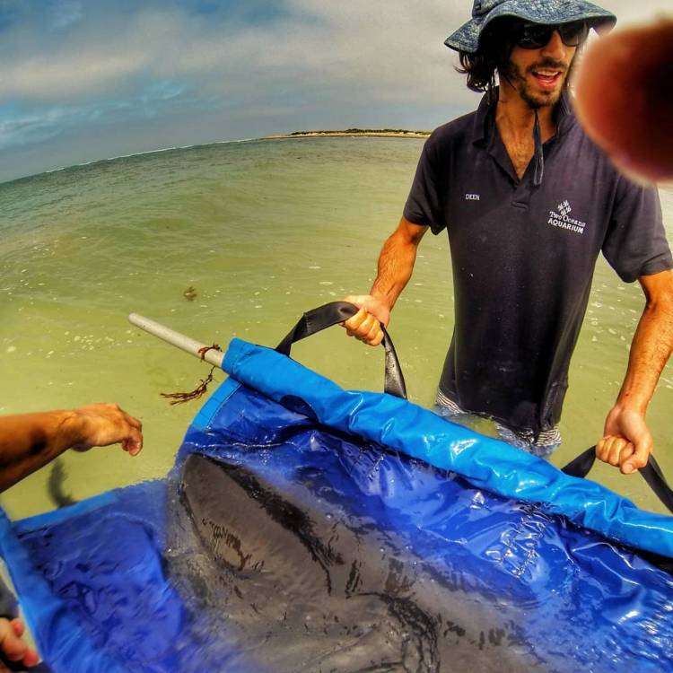 Unfortunately, despite our experience and every precaution being taken to release these two sharks safely, Bernie, the smaller of the two released sharks was found beached a short time after release. Challen, the larger shark, has returned to the wild successfully and we are awaiting data from the tag that was embedded in him.