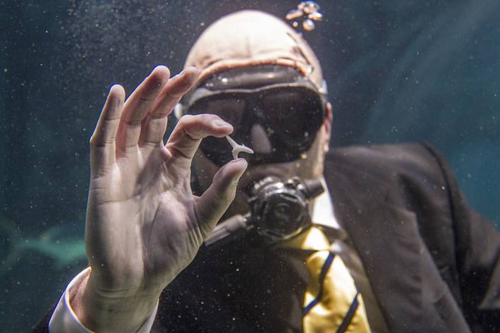 “Added to the stress and potential dangers was the fact that I was wearing a shirt, jacket & tie over my SCUBA gear for the photoshoot, so my movement would be slightly more restricted than usual.”
