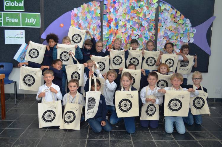DSK's plastic-bag free journey began in April 2018, with a "green action" assembly, to which the Aquarium's Rethink the Bag campaigner was invited. The school challenged its learners to design the ideal reusable shopping bag - with the winners bag put into production in time for the school to declare itself a plastic shopping bag-free zone in Plastic Free July.