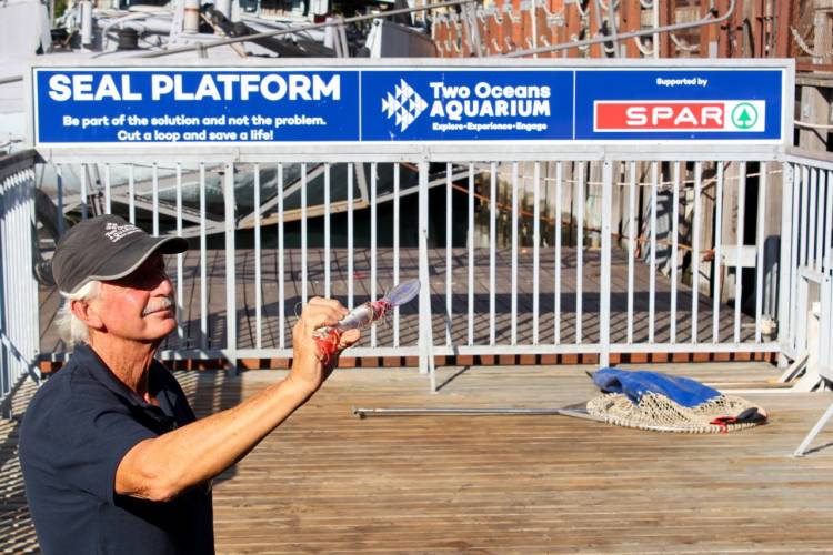 In 2007, Two Oceans Aquarium Assistant Technical Manager Vincent Calder and Assistant Curator Claire Taylor began assisting the Department of Environmental Affairs and Tourism's Oceans and Coasts unit with the removal of looped debris and box bands from Cape fur seals in the V&A Waterfront.