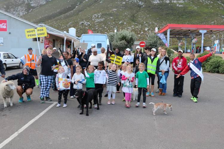 In May 2017, the Aquarium’s Environmental Education Outreach Programme received a generous helping hand from SPAR Western Cape, who sponsored a visit to five schools in the Overberg region of the Western Cape. It was part of the annual Penguin Promises Waddle for a Week campaign (a PAAZA, SAAMBR and Two Oceans Aquarium initiative), which sees 16 penguin lovers from all walks of life “waddle” 120km along the coast from Gansbaai to Simon’s Town to raise awareness for the endangered African penguin, and the planet.