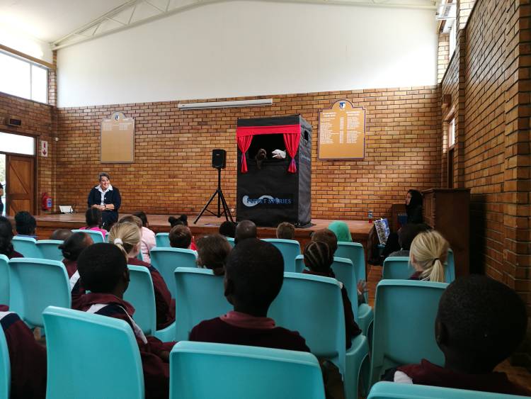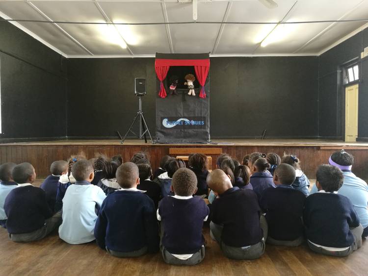 While Anzio was teaching older kids, Puppet Stories Puppeteers Aisha Martin and Zingisa Mgumane gave 15-minute puppet shows to children in grades 1 to 3 at the same schools. Our puppet shows carry a strong environmental message packaged in a fun and accessible narrative. The Puppet Stories team has been carefully assembled in order to provide the shows in English, Afrikaans or Xhosa. “The children enjoyed the shows throroughly, as it was in their mother tongue, which made it even more fun and exciting,” says Zingisa. “After the show, we also explained ways in which they can help save African penguins.”