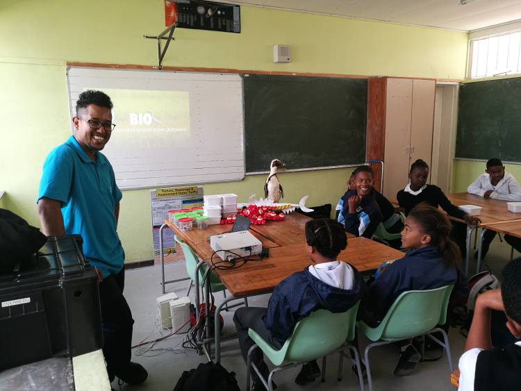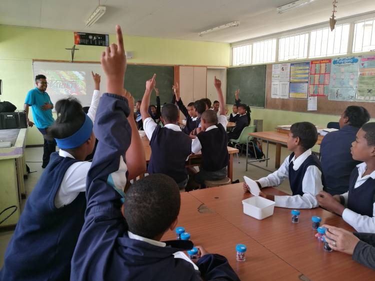 Two Oceans Aquarium Smart Living Outreach Educator Anzio Abels taught five lessons to 527 grade 6 and 7 students at Gansbaai, Okkie Smuts, Die Bron and Zwelihle primary schools. Anzio’s full-time job is to take the Smart Living outreach vehicle all around the Cape, where he teaches about water saving, sustainable energy use, waste management and biodiversity conservation – these lessons are aligned with and supported by the City of Cape Town’s Smart Living programme (and our own Smart Living Challenge Zone, created in partnership with the City).