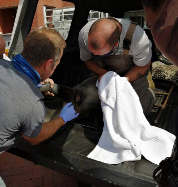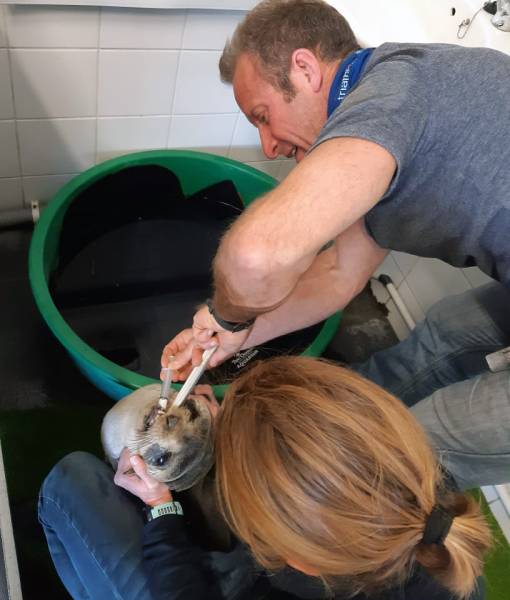 Only one small injury was found, possibly a bite from another seal, which was already healing naturally, so it was decided to release her again as soon as possible.