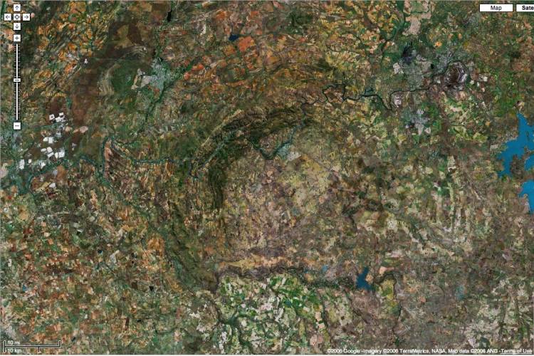 The Vredefort Impact Structure is more than 300km across - twice as wide and four times as large as the Chixulub Crater (the one from the impact that wiped out the sauropod dinosaurs). An asteroid more than 15km across struck the earth with more than ten times the energy of every nuclear bomb ever made combined. Luckily, this happened two billion years ago, long before complex life evolved on Earth!