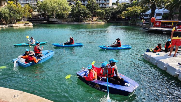Then, it was off to the V&A Waterfront's canals, where The Little Optimist met up with Two Oceans Aquarium staff to join the kids for an exciting water-based canal clean-up!