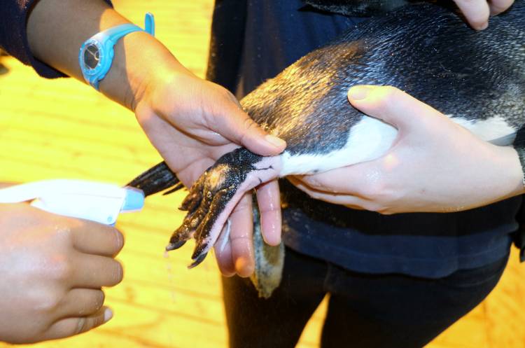 Ageing penguins are prone to bumblefoot infections - a bacterial infection that affects the soles of their feet. It can make waddling extremely painful and difficult for seabirds such as penguins, and Teddy is, unfortunately, no exception. Teddy developed Stage 3 bumblefoot - a potentially fatal condition (we'll spare you the gruesome details).