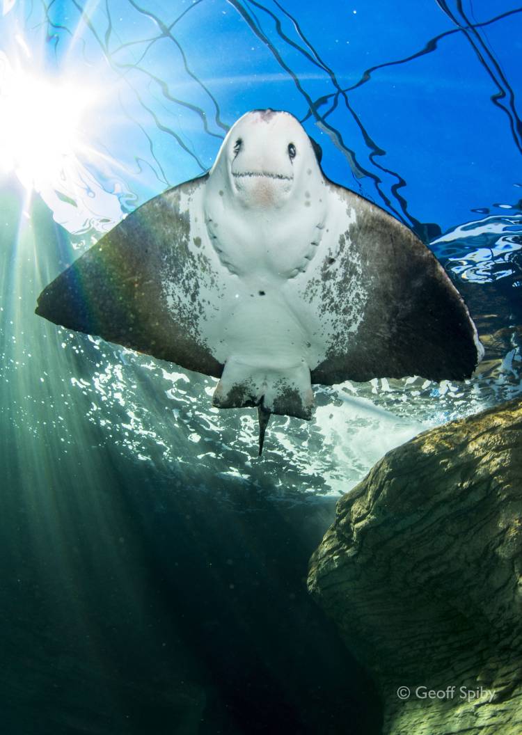 Although docile, eagle rays have a bunch of defensive abilities - colour-changing camouflage, spikes and electric shocks.
