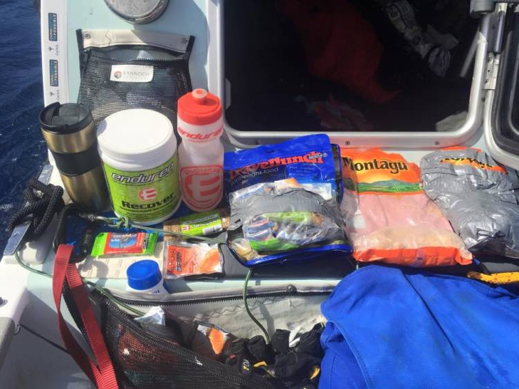 Food and hydration have been key to this project I have four freeze-dried meal options, and these are made up into 95 daily ration packs for 96 days, worst-car scenario estimated time to the Caribbean. Each pack has three freeze-dried meals.