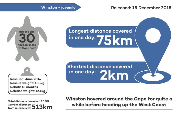 Little Winston was released on 18 December, approximately 30 nautical miles off Cape Point as well. Winston immediately started moving back towards Cape Town and initially had us quite puzzled.