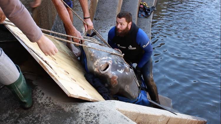 Simon has also had the opportunity to be part of some amazing rescue stories. In September 2016, he was part of the team that rescued a very large sunfish from the dry dock across the road from the Aquarium (he ended up on Discovery Channel for this). But this is not the first time that he had been part of a rescue team. In 2015, two sunfish were trapped in the Sturrock Dry Dock in the Waterfront. Simon was also part of that rescue team.