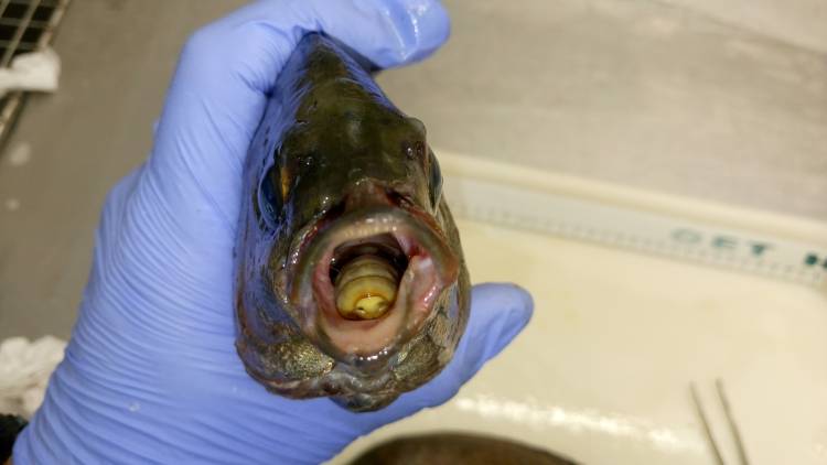 “You sedate the fish and then open its mouth, and there, staring back at you, is a pair of eyes! Sometimes there is even more than one pair! We remove these guys manually," Nic chuckles.