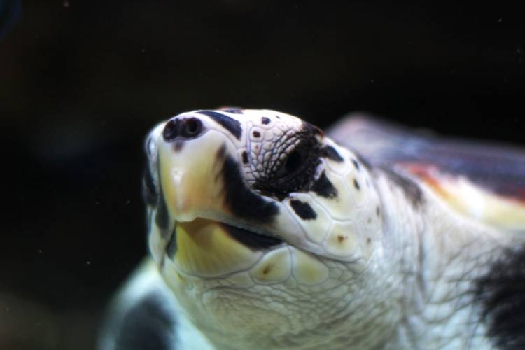 Loggerheads feed predominantly on sea urchins, molluscs and hermit crabs, which they crush with their powerful jaws. Check out its amazing hooked beak in this picture!